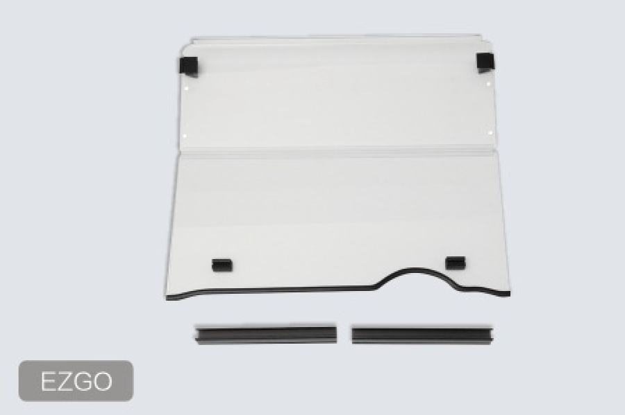 Our clear fold-down windshield for the EZGO is constructed from thick polycarbonate, offering superior impact resistance and durability compared to standard windshields.