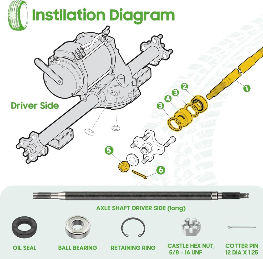 EZGO RXV Rear Spline Axle Shaft with Bearing Seal Kit quantity